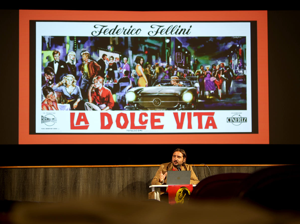 “Un momento importante che arriva dopo vent’anni di ricerche e studi”, commenta Luca Siano. “Cinque anni fa, nel 2020 – prosegue Siano – ho fondato l’Archivio Sandro Simeoni, un’operazione di tutela e valorizzazione del patrimonio artistico che questo grande pittore ci ha lasciato”. Tutti i materiali in parete, comprese rare fotografie mai esposte prima, sono originali e provengono dall’archivio che Siano ha meticolosamente costruito nel corso del tempo. La mostra dedicata al pittore ferrarese (1928-2008) coincide anche con un anniversario importante, ovvero i cinquant’anni dall’uscita di “Profondo Rosso”, film cult di Dario Argento per cui Symeoni realizzò  l’iconico manifesto promozionale. L’esposizione è stata inaugurata sabato 30 agosto alle 12:00 con un panel dal titolo “Symeoni pittore cinematografico”, condotto da Luca Siano. Lunedì 1° settembre c’è stato un altro importante appuntamento, ovvero la consegna dello speciale Premio Simeoni 2025 al Maestro Dario Argento che si è dimostrato sorpreso e felice “di ricevere questo premio inaspettato”.